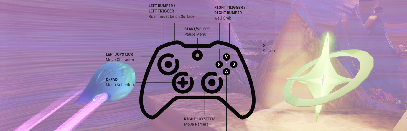 Rush can only be used when Floaty is touching a surface. It gives a boost in the viewing direction and pushes slightly away from the surface. If Floaty is on a wall, Rush detaches him from it. Rush converts the current velocity into Floaty’s viewing direction, making it especially effective while falling. After use, Rush is weakened for a short time and must recharge.